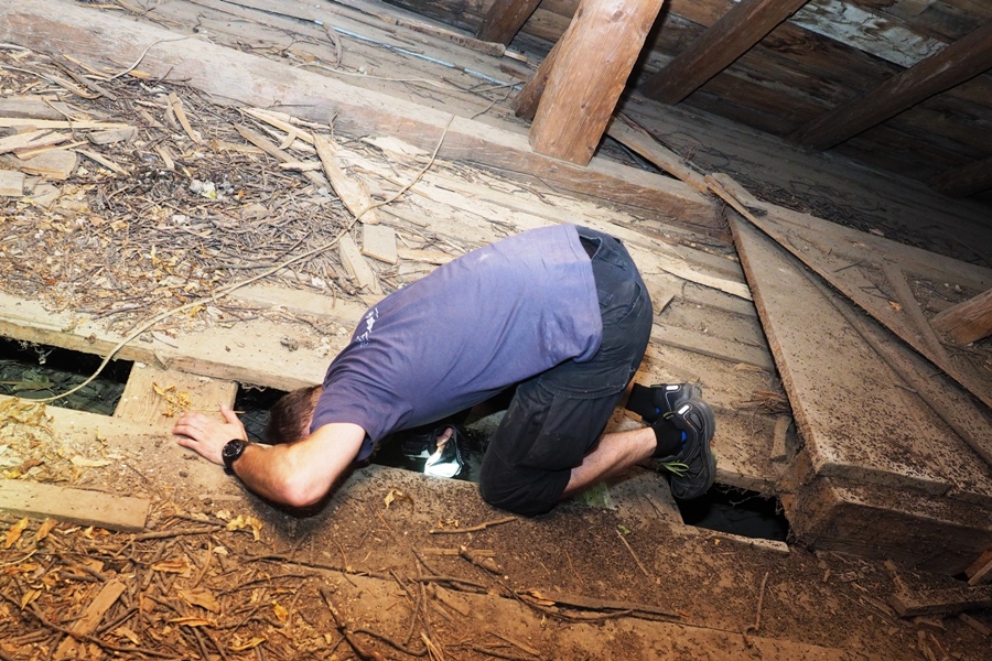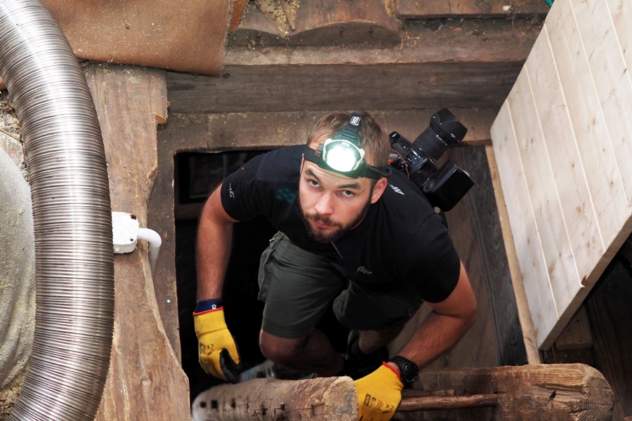 That’s why LIFE Podkowiec+ team members visit over 100 objects inhabited by bats. It requires climbing to the attics and towers, searching under the floor and into the cellars, both inside the roost buildings and hidden nearby the colony. Bats use different parts of the buildings, adjusting their choice mainly to the weather. They love warm, but it is sometimes too hot even for them, and they seek for a cooler place to hide from the heat.