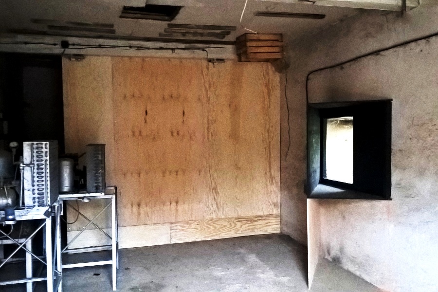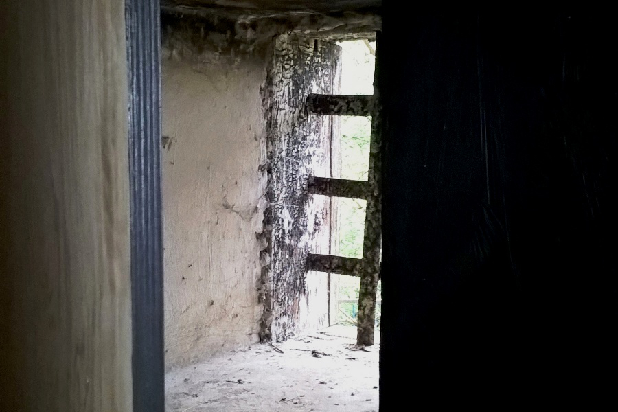 The ground floor room was also upgraded to the bat salon level. A screen was placed across the room dividing it into darker and draught-less part behind and the entrance hall in front of it. The only window was left for bats to fly in, but also screened with a baffle painted black to better reduce the entering light levels. It reduces draughts as well. The entrance door were insulated and strengthened for the same purpose.