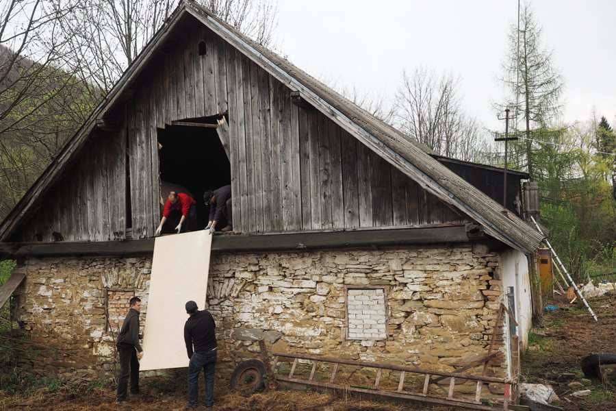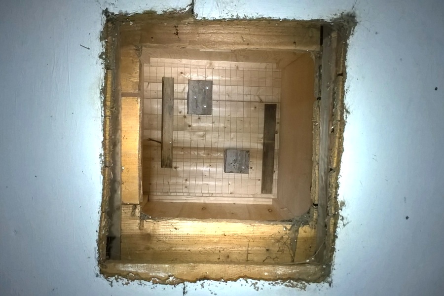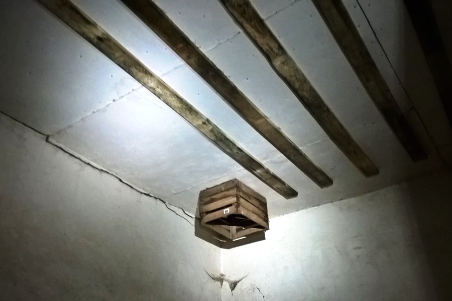 The Horseshoes were granted with one room at the ground level and the whole attic. Unfortunately, the attic had too much light (and draughts) for the bats, which would be unrealistic to mend, assuming available resources. The main adaptations have been done in the room, and small extension was set on the attic with the special entrance from below cut through the ceiling. The extension is solid and air- and light-proof. Its location helps to trap warmer air and thus differentiate the microclimatic conditions available to the colony.