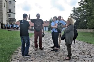 During the filed visit, the guests learned about different tasks of the project – renovations, adaptations, green space improvements. They had also opportunity to see some activities inspired by the project, such as opening of the bat trail for tourists, educational activities of the Horseshoe Ambassadors, and plush horseshoe bats produced for the Museum in Ciężkowice. Some promotional activities of the project staff, including lectures, competitions and media interviews, enhanced actions of the counterparts.