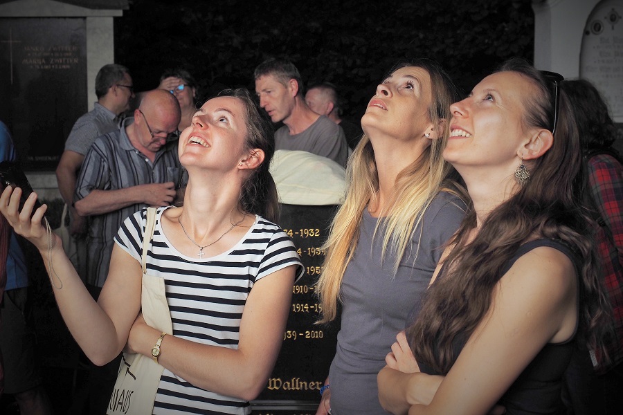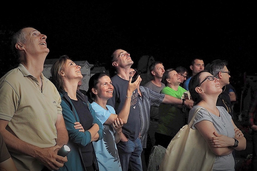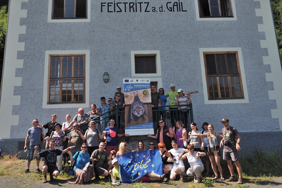 Uczestnicy wyprawy studyjnej zapoznali się też z inną formą nietoperzowej edukacji – wieczorną obserwacją wylotu nietoperzy na polowanie. W kościele w Feistritz znajduje się kolonia kilkuset nocków dużych. Odwiedzili również zamek Schloss Wasserleonburg, gdzie do niedawna w jednej z kotłowni funkcjonowała kolonia letnia podkowców, ale po jej wyłączeniu, pomieszczenie przekształciło się w małe zimowisko nietoperzy.