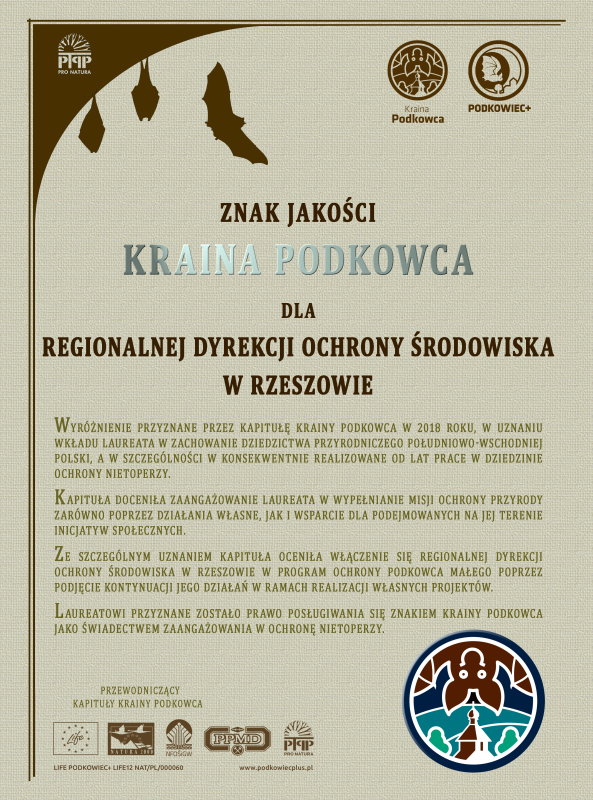 Regionalna Dyrekcja Ochrony Środowiska w Rzeszowie otrzymała Znak Jakości Kraina Podkowca w 2018 roku.